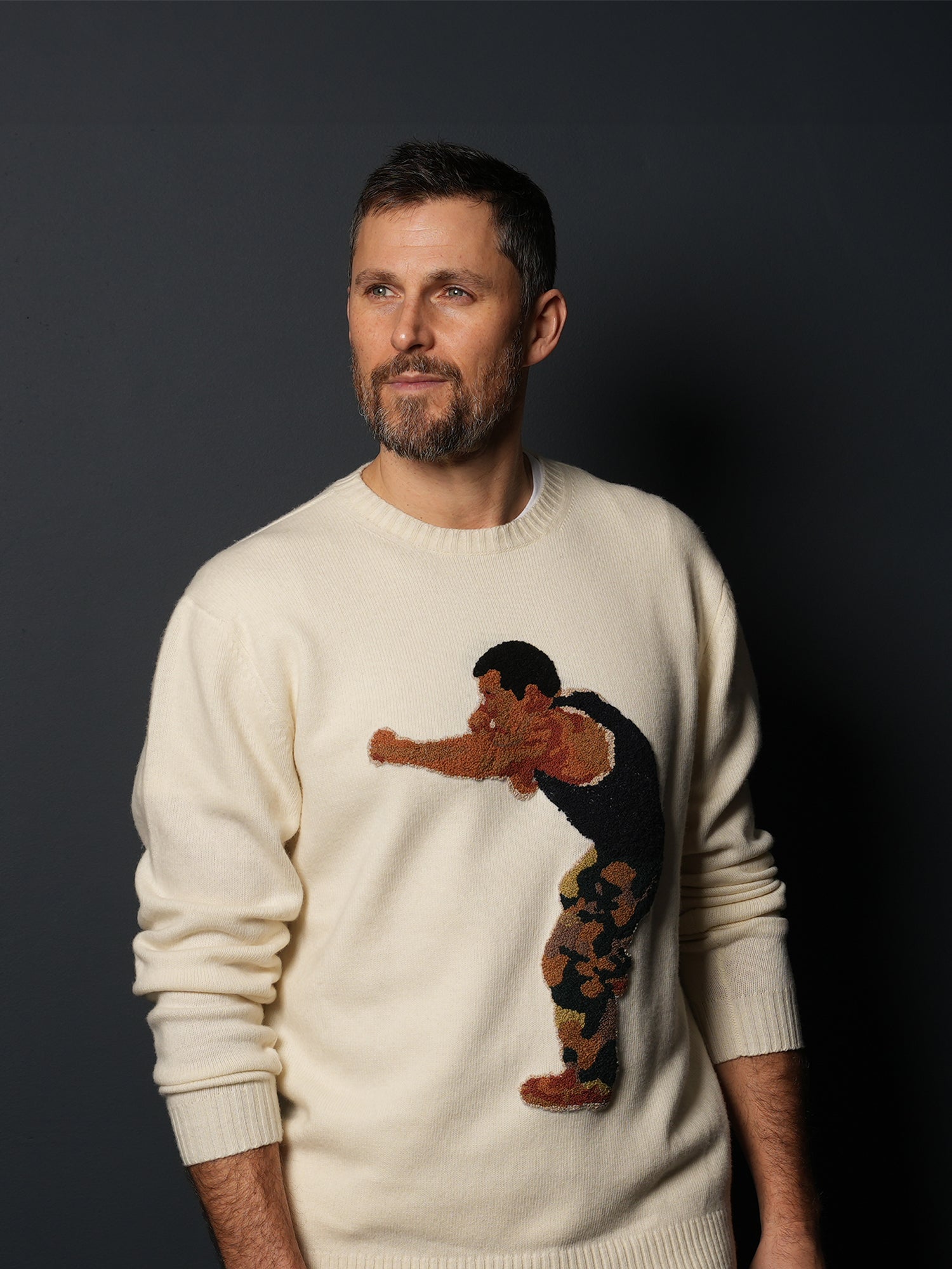 EMBROIDERED BOXER CREWNECK KNIT CREAM