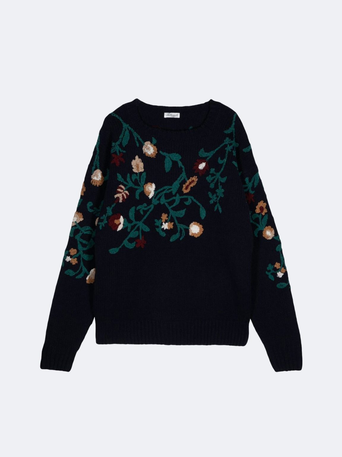 EMBROIDERED FLORAL CREWNECK KNIT NAVY