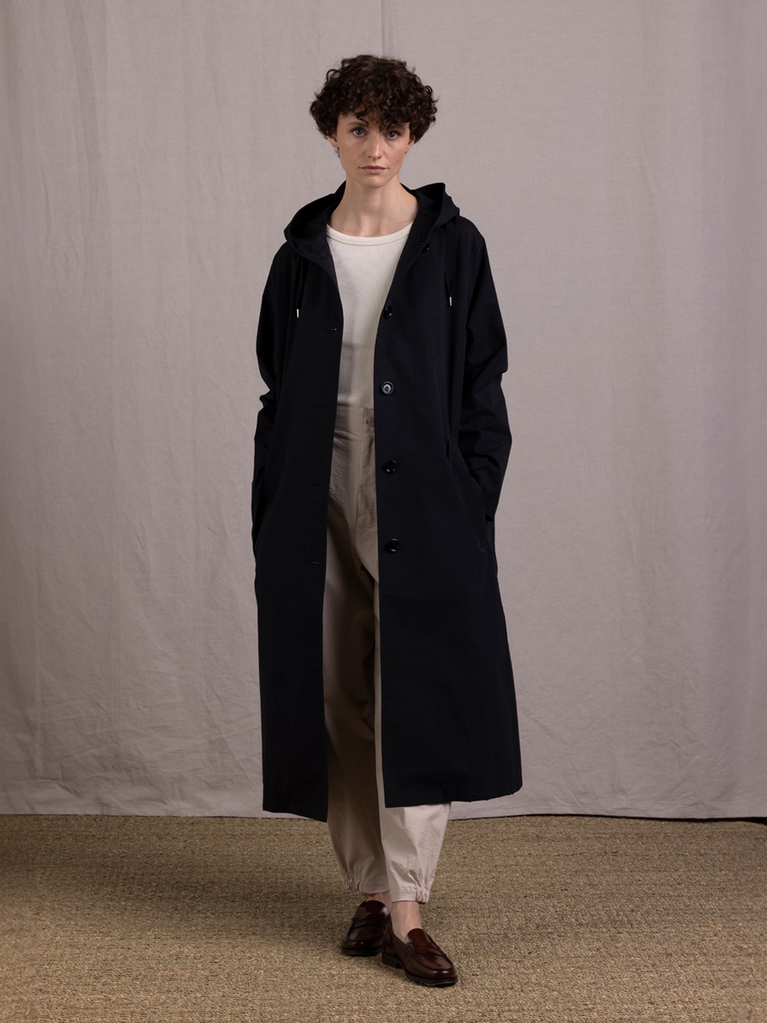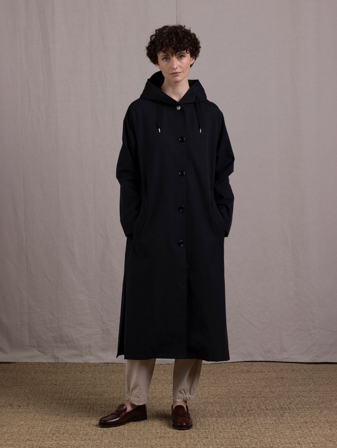| This Maison Lener oversized raincoat is made of water-repellent waxed cotton fabric.?